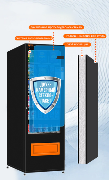Толстый слой изоляцинной пены позволяет сохранять стабильную температуру внутри автомата независимо от внешних условий.